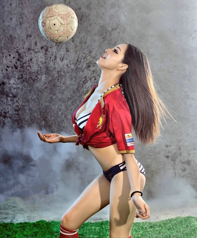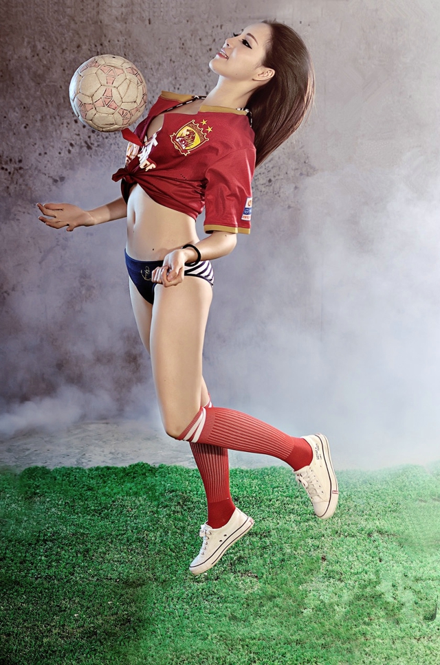 性感诱人娇艳红唇足球宝贝惹火乳沟火辣诱惑迷人户外写真
